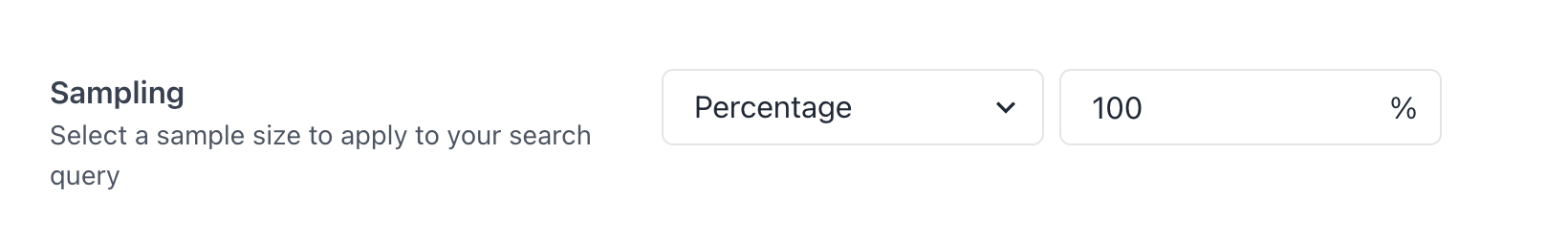 Percentage: using the text input on the right-hand side, enter a numerical percentage of results you would like to return. This must be a number between 0.1 and 100.