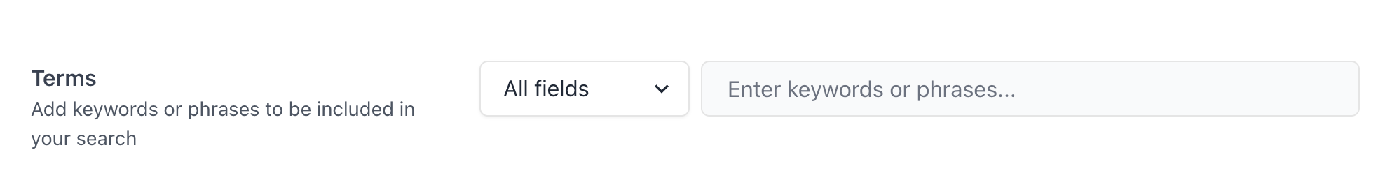Terms: keywords or phrases that are included in your search.