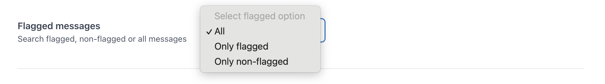 The flagged messages field is a dropdown with three options: